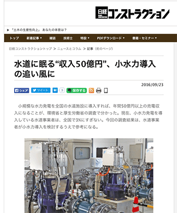 →『水道に眠る“収入50億円”、小水力導入の追い風に』