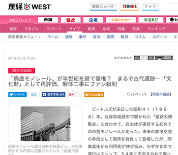 「〝廃虚モノレール〟が半世紀を経て復権? まるで古代遺跡…「文化財」として再評価、解体工事にファン殺到」という姫路モノレールについて取り上げている記事が、産経WESTに掲載されています。