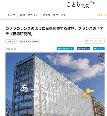 「カメラのレンズのように光を調整する建物。フランスの「アラブ世界研究所」」という記事が、ことりっぷに掲載されています。