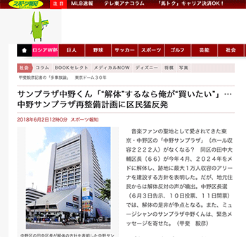 →『サンプラザ中野くん「“解体”するなら俺が“買いたい”」…中野サンプラザ再整備計画に区民猛反発』