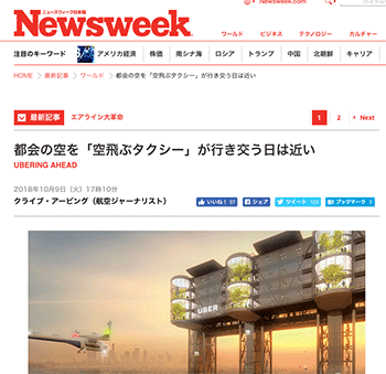 「都会の空を「空飛ぶタクシー」が行き交う日は近い」という記事が、ニューズウィーク日本版に掲載されています。