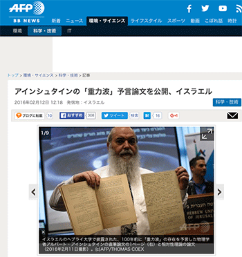 →『アインシュタインの「重力波」予言論文を公開、イスラエル』