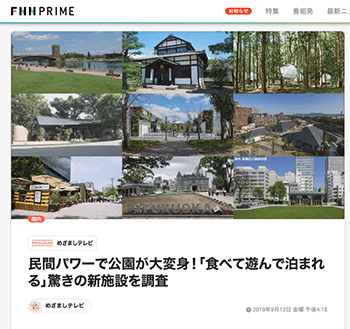 「民間パワーで公園が大変身!「食べて遊んで泊まれる」驚きの新施設を調査 」という各地の公園内に新しくできた民間施設とその取り組みについて取り上げている記事が、FNN.jpプライムオンラインに掲載されています。