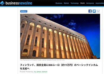 →『フィンランド、国民全員に800ユーロ(約11万円)のベーシックインカムを支給へ』