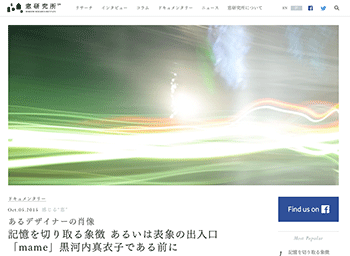→『あるデザイナーの肖像 記憶を切り取る象徴 あるいは表象の出入口 「mame」黒河内真衣子である前に』