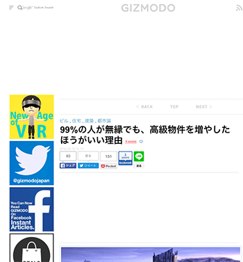 「99%の人が無縁でも、高級物件を増やしたほうがいい理由」という記事が、 ギズモード・ジャパンに掲載されています。