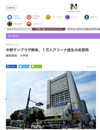「中野サンプラザ解体、1万人アリーナ誕生の皮算用」という記事が、NIKKEI STYLEに掲載されています。