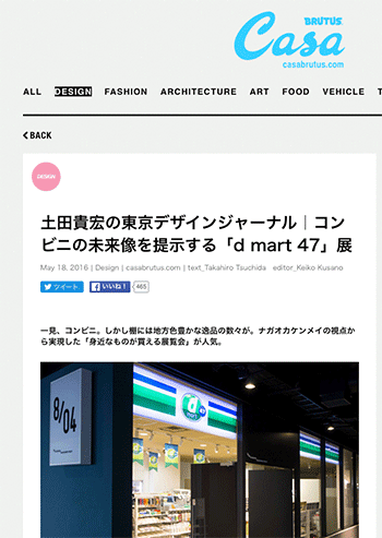 渋谷ヒカリエのd47 MUSEUMにて現在、開催中の「d mart 47」展について取り上げている記事が、カーサ ブルータスに掲載されています。