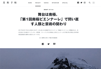 2017年3月17日から28日にかけて、開催された世界初の「南極ビエンナーレ」についてレポートしている記事が、美術手帖に掲載されています。
