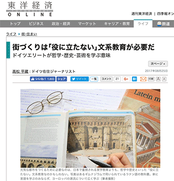 街づくりは「役に立たない」文系教育が必要だ /ドイツエリートが哲学・歴史・芸術を学ぶ意味 (東洋経済オンライン)