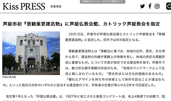 「芦屋市初『景観重要建造物』に芦屋仏教会館、カトリック芦屋教会を指定」という芦屋市では初の指定となる景観重要建造物の内容について取り上げている記事が、Kiss PRESSに掲載されています。