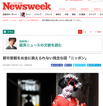 「都市景観をお金に換えられない残念な国「ニッポン」」という記事が、ニューズウィーク日本版に掲載されています。