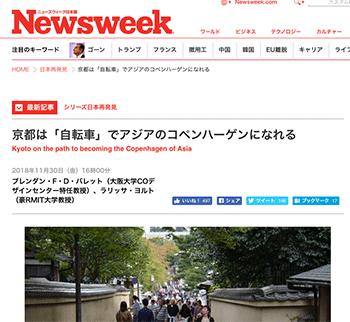 「京都は「自転車」でアジアのコペンハーゲンになれる」という記事が、ニューズウィーク日本版に掲載されています。