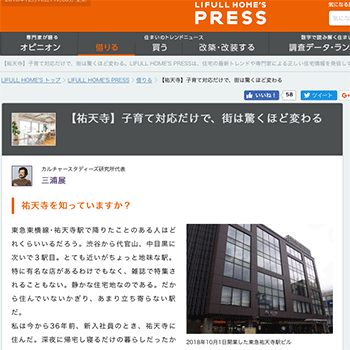 「【祐天寺】子育て対応だけで、街は驚くほど変わる」という三浦展氏による記事が、LIFULL HOME’S PRESSに掲載されています。