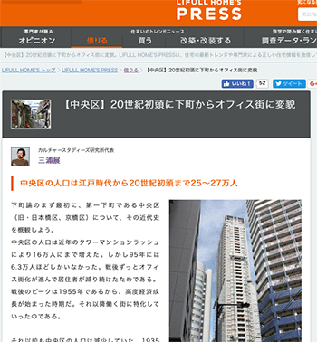 「【中央区】20世紀初頭に下町からオフィス街に変貌」という三浦展氏による記事が、LIFULL HOME’S PRESSに掲載されています。