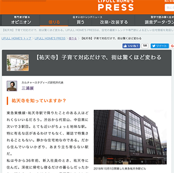 「【祐天寺】子育て対応だけで、街は驚くほど変わる」という三浦展氏による記事が、LIFULL HOME’S PRESSに掲載されています。