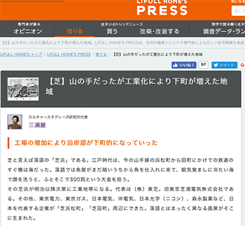 「【芝】山の手だったが工業化により下町が増えた地域」という三浦展氏による記事が、LIFULL HOME’S PRESSに掲載されています。