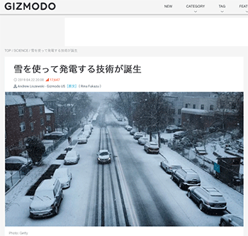 雪を使って発電する技術が誕生」という記事が、ギズモード・ジャパンに掲載されています。