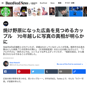 「焼け野原になった広島を見つめるカップル 70年越しに写真の真相が明らかに」という記事が、buzzfeednewsに掲載されています。